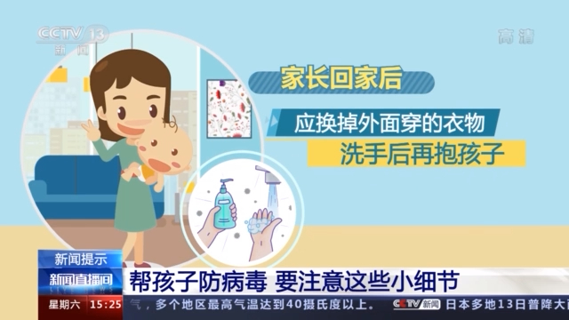 家长回家后应换掉外面穿的衣物,洗手后再抱孩子。