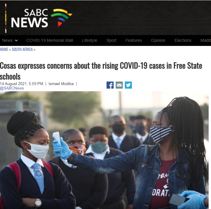 据南非国家广播公司当地时间8月14日报道,8月份开学后南非多所中小学出现大规模感染现象,南非民主教师联盟、学生大会等机构呼吁政府尽快制定为学生注射疫苗计划。
