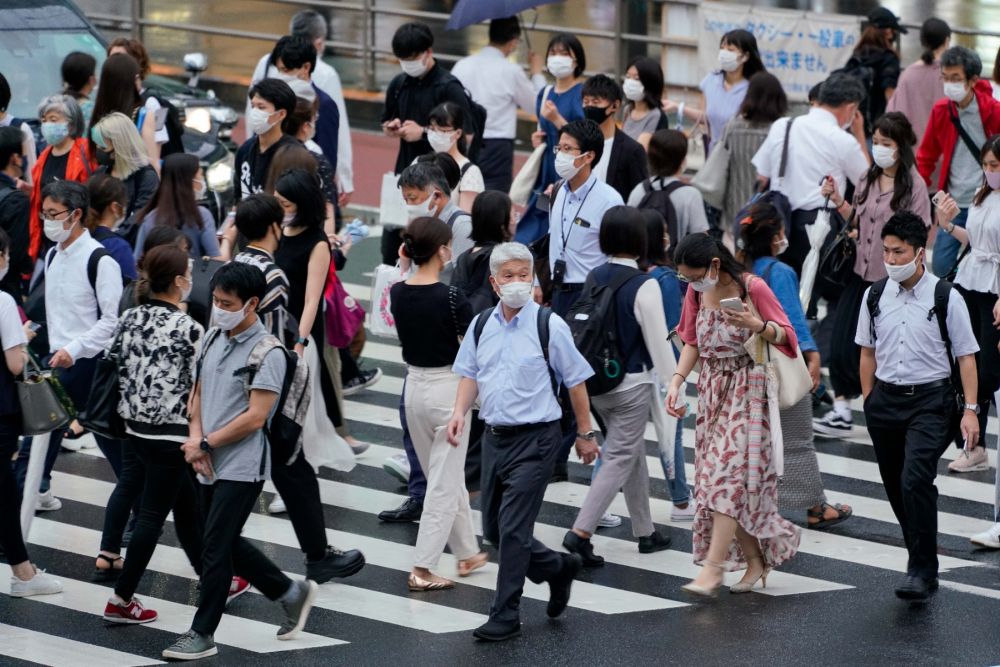 7月8日,人们戴着口罩在日本东京街头出行。(新华社发,克里斯托弗·朱摄)