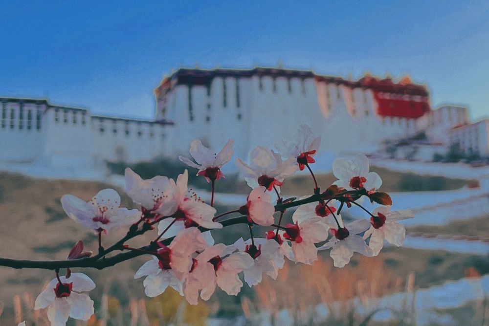 余晖中的布达拉宫。新华社记者 孙阳 摄