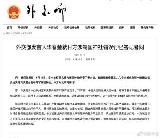 外交部发言人#华春莹就日方涉靖国神社错误行径答记者问#