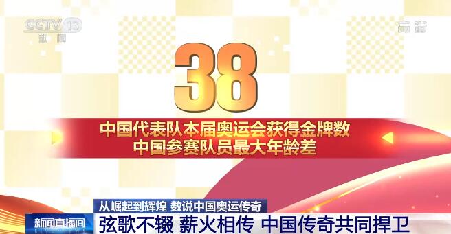38。这既是中国代表团本届奥运会摘取的金牌数,也是中国参赛队员的最大年龄差。根据中国体育代表团此前公布的参赛名单,本届奥运会中国运动员中年龄最大的是马术队的李振强,52岁;年龄最小的是跳水队的全红婵,14岁。弦歌不辍,薪火相传。中国奥运健儿用坚韧、拼搏共同捍卫了中国体育的荣光,创造了中国体育新的辉煌。