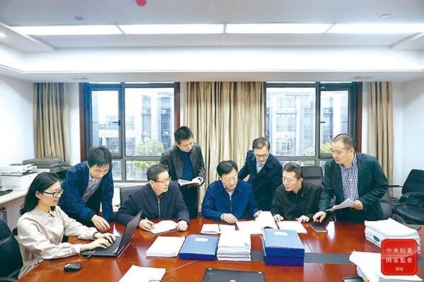 安徽省纪委监委专案组工作人员在一起省农商行系统案件移送审理前,讨论完善审查调查报告。许怡然 摄(图片来源:中央纪委国家监委网站)