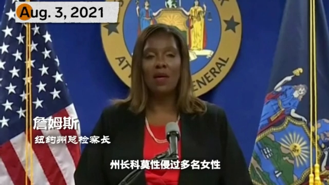 纽约州总检察长 詹姆斯:州长科莫性侵过多名女性,其中很多是年轻女性,包括非自愿的触摸、亲吻、搂抱以及不当言论。