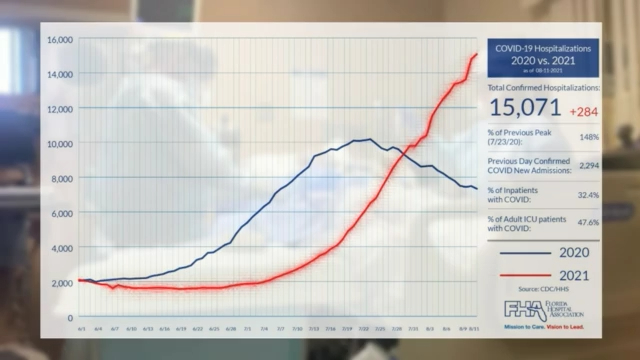 据佛州医疗系统联合会公布的数据,8月11日,佛州因新冠肺炎住院的人数刷新了自2020年新冠病毒暴发以来该州的历史记录。