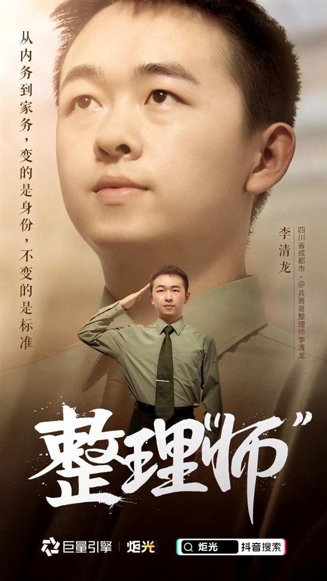 四川成都的退伍军人李清龙,2020年退伍后,用在部队学习的折叠衣物技能,在抖音开设账号、发布短视频并运用DOU+加热,收获了数十万粉丝。李清龙由此看到新兴行业“家居整理”的市场需求,从而创立了自己的品牌“优逸居”,成为一名整理收纳师。视频吸引数千位退伍军人交流,目前公司一半以上员工均是从抖音上看到视频前来的退伍军人。秉持“换装不换心”的信念,李清龙为更多退伍军人打开新窗口,正在带领退伍军人突破创新、找到属于自己的新道路,从一个人的“整理师”发展成一支优秀的整理“师”队伍。