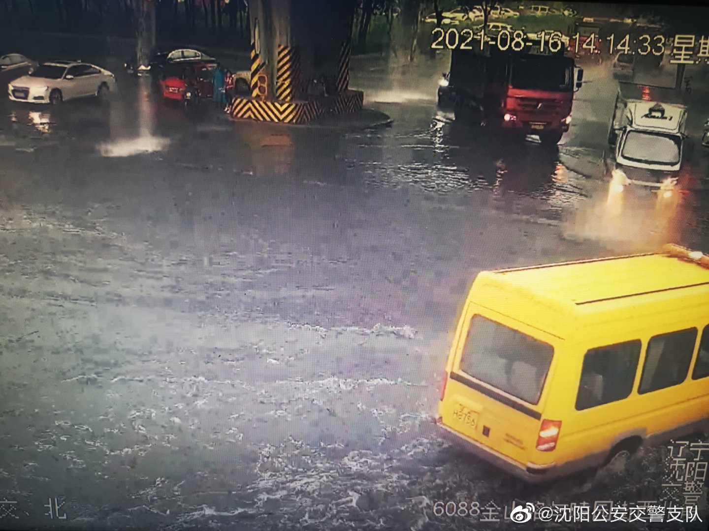 受降雨影响,沈阳市城区道路出现积水,部分路段积水较深,车辆无法通行。