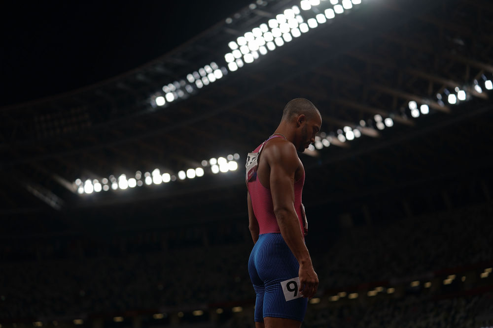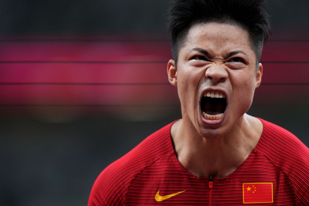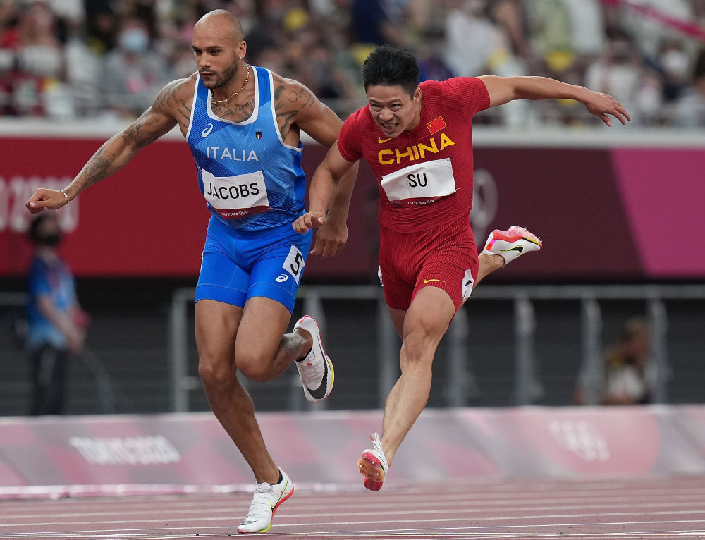 8月1日,苏炳添在比赛中。当日,东京奥运会田径男子100米半决赛在东京新国立竞技场举行。