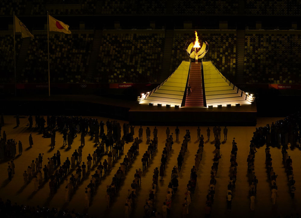 7月23日,第32届夏季奥林匹克运动会开幕式在日本东京举行。这是开幕式上主火炬被点燃。
