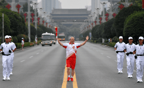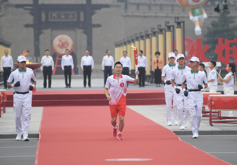 (跳水奥运冠军秦凯起跑完成第一棒)