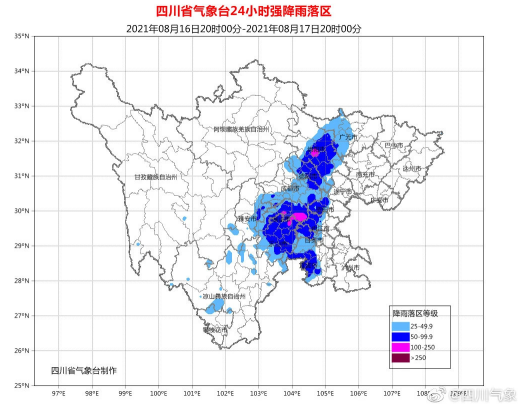 四川省气象台8月16日16时00分发布暴雨蓝色预警:16日20时到17日20时,眉山、乐山2市,绵阳、德阳2市中部,成都、雅安2市中东部及资阳、内江、自贡、宜宾4市西部有暴雨(雨量50~80毫米),并伴有雷电和短时阵性大风,局部地方有大暴雨(雨量120~140毫米)。(总台记者 黄鹂 杨妮)