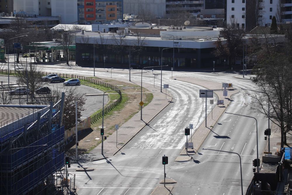 8月13日,在澳大利亚堪培拉拍摄的“封城”期间市中心空旷的街道。(新华社发,刘畅畅摄)