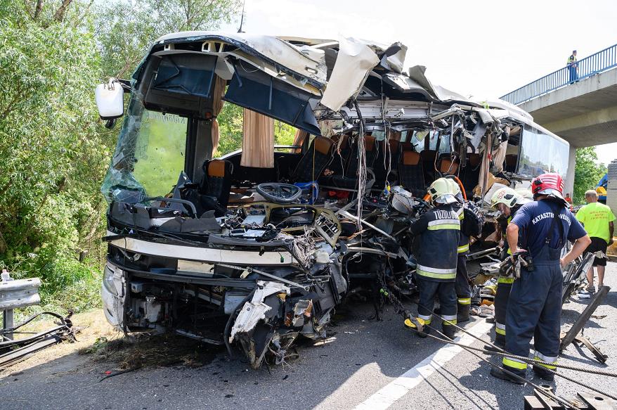 警方表示,事发地点位于布达佩斯以西70公里处,客车冲破路障,撞到立交桥的墩柱并翻入路旁水沟中。
