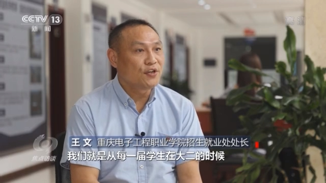 重庆电子工程职业学院招生就业处处长王文说:“我们从每一届学生在大二的时候,在每年四五月份开始做好准备工作,建库摸清学生意向,有针对开拓市场,为学生做好毕业生岗位筹备,我们每年给每位学生提供12个左右岗位。”