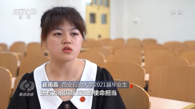 西安石油大学2021届毕业生崔雨嘉说:“我被石油工人一心向党、执着追求的精神和为祖国献石油的使命担当所触动,后来在高考填报志愿的时候,就选择了西安石油大学的石油工程专业。”