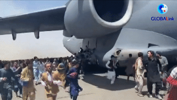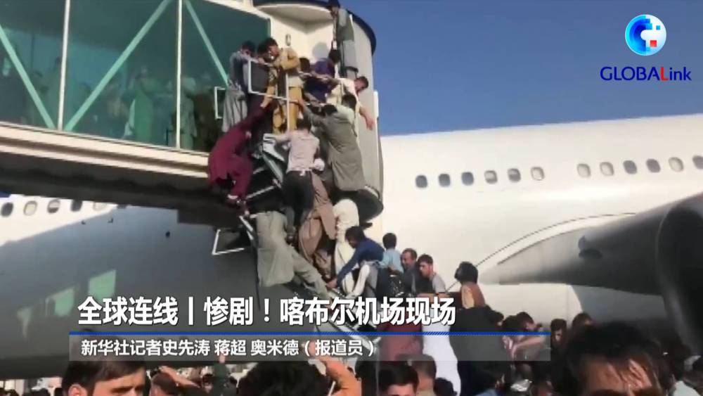 16日,上千人涌向喀布尔机场,他们有的人即使没有护照和机票,仍然试图登上飞机寻求离开阿富汗的途径。