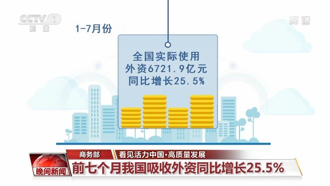 商务部8月16日发布数据显示,今年前七个月,全国实际使用外资6721.9亿元人民币,同比增长25.5%,比2019年同期增长26.1%。服务业实际使用外资5355.7亿元人民币,同比增长29.2%,占全国实际使用外资的79.7%。“一带一路”沿线国家、东盟实际投资同比分别增长46.3%、46.3%。