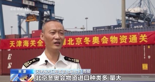 天津海关口岸监管处副处长 高斌:北京冬奥会物资进口种类多、量大,天津海关在主要口岸设置了北京冬奥物资专用通道、专用窗口。