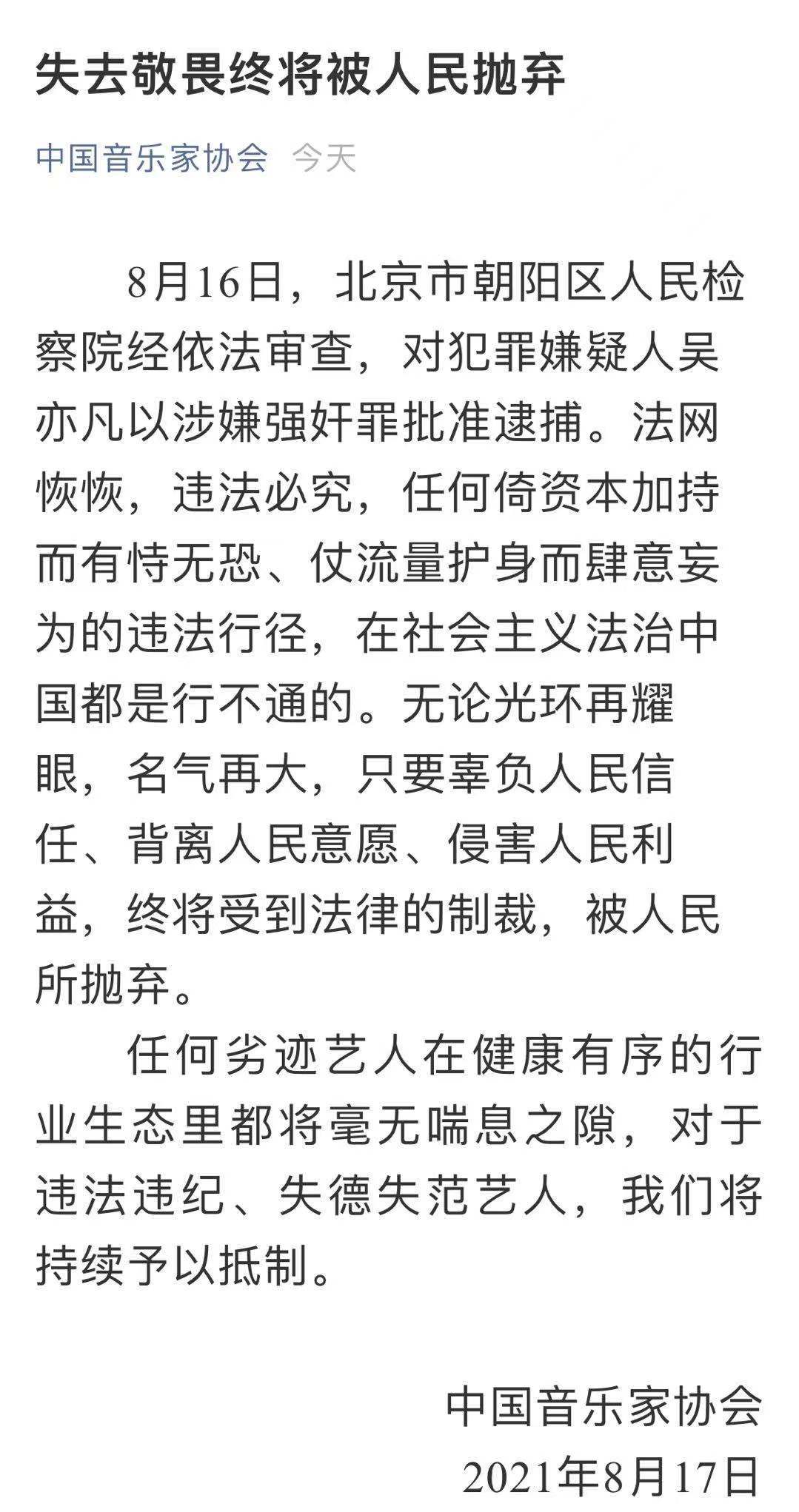 任何劣迹艺人在健康有序的行业生态里都将毫无喘息之隙,对于违法违纪、失德失范艺人,我们将持续予以抵制。