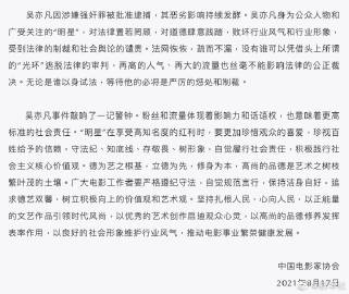 【#三协会就吴亦凡被批捕事件发声#】中国电影家协会、中国音乐家协会、中国电视艺术家协会17日分别就吴亦凡被批捕事件发声。中国影协表示,再高的人气、再大的流量也丝毫不能影响法律的公正裁决。无论是谁以身试法,等待他的必将是严厉的惩处和制裁。中国音协表示,任何劣迹艺人在健康有序的行业生态里都将毫无喘息之隙,对于违法违纪、失德失范艺人,我们将持续予以抵制。中国视协表示,坚决不与违反道德法律、违背公序良俗者为伍,坚决不给违法失德之人存留容身之处,齐心合力共同营造电视行业风清气正良好氛围。(记者王鹏)