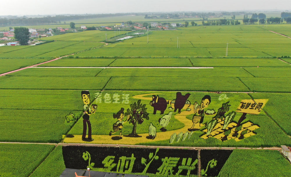 ↑这是8月16日拍摄的稻田画《乡村振兴》(无人机照片)。