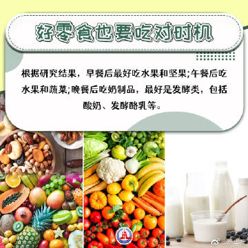 【研究称#零食吃对了有助延长寿命#】近期,《美国心脏协会杂志》发布的一项研究显示,#早餐后的最佳零食是水果#,晚餐后的最佳零食为奶或奶制品,这样有助调节身体新陈代谢,显著降低心血管疾病及癌症死亡风险。而在任何一餐后食用淀粉含量高的零食,都会增加死亡风险和心血管疾病风险。那么零食该怎么吃呢?戳图查收↓(来源生命时报,设计盛瑞丽)