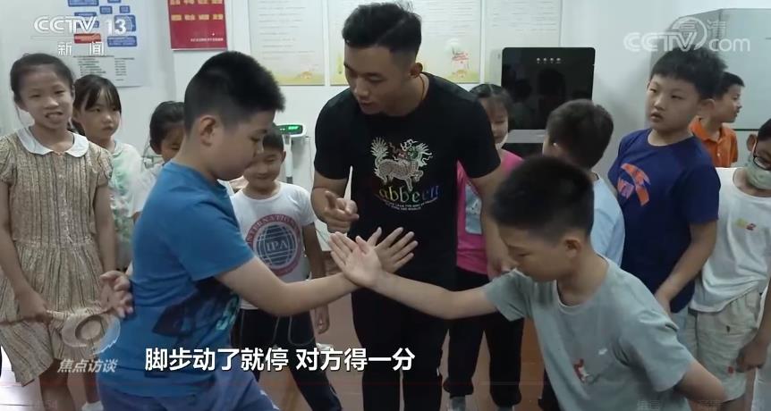 正在给徐家汇街道暑托班孩子们上太极推手课的老师并不是来自教育系统,而是来自一家武术俱乐部的专业教练。