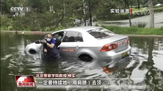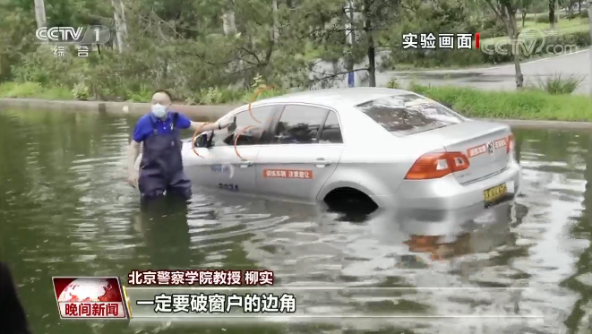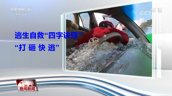 消防人员总结了车辆被困水中的逃生自救“四字诀窍”:“打、砸、快、逃”。