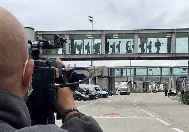 △撤离人员抵达巴黎戴高乐机场 图片来自法新社