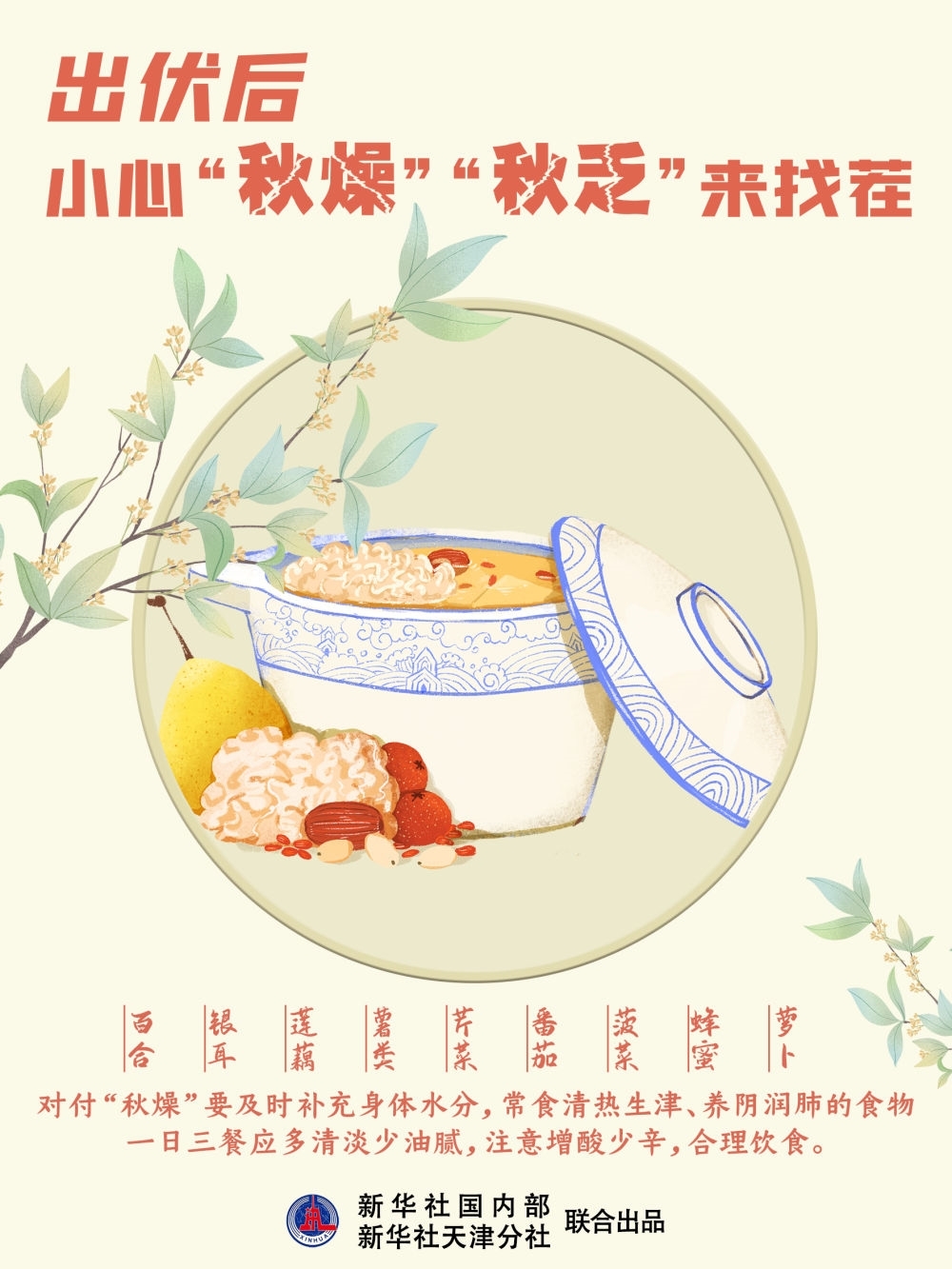 出伏后天气日渐干燥,人们易患干咳少痰、口干舌燥、鼻咽不适等“秋燥”之症;又由于天气由热转凉,很多人易感疲劳,也就是民间常说的“秋乏”。