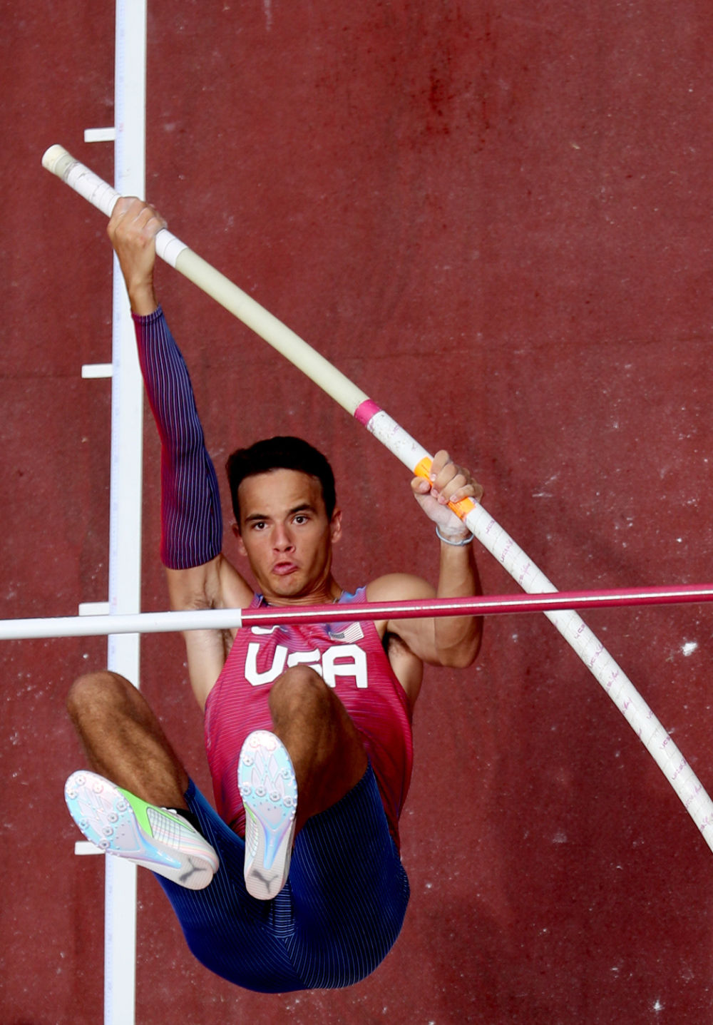 ↑7月31日,美国选手赖特福特在东京奥运会男子撑杆跳预赛中。