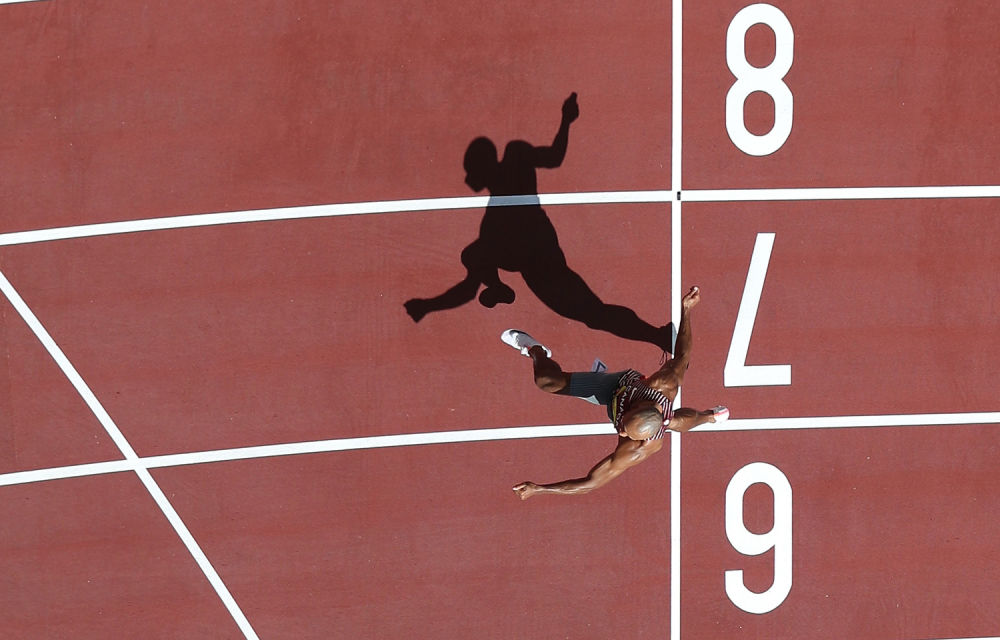 第三,情绪迸发。运动员在赛事的关键节点往往会迸发出积攒已久的情绪,从高空捕捉这些瞬间,比较容易将事件与赛事标识融合起来,并起到与地面拍摄不同的效果。