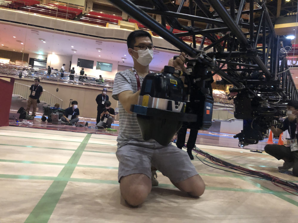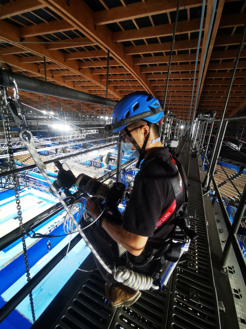 ↑徐子鉴在东京有明体操中心安装固定遥控相机。