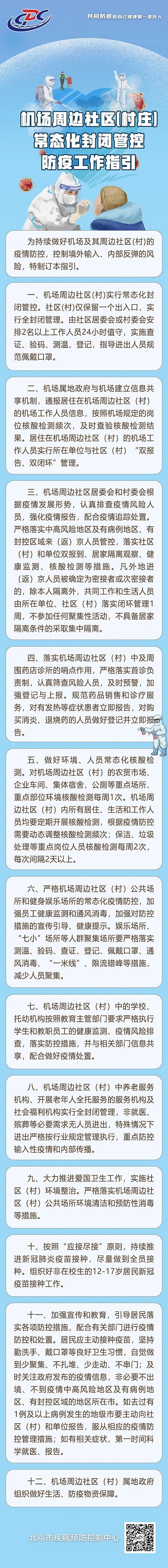 为持续做好机场及其周边社区(村)的疫情防控,控制境外输入、内部反弹的风险。8月18日,北京市疾控中心发布机场周边社区(村庄)常态化封闭管控防疫工作指引。