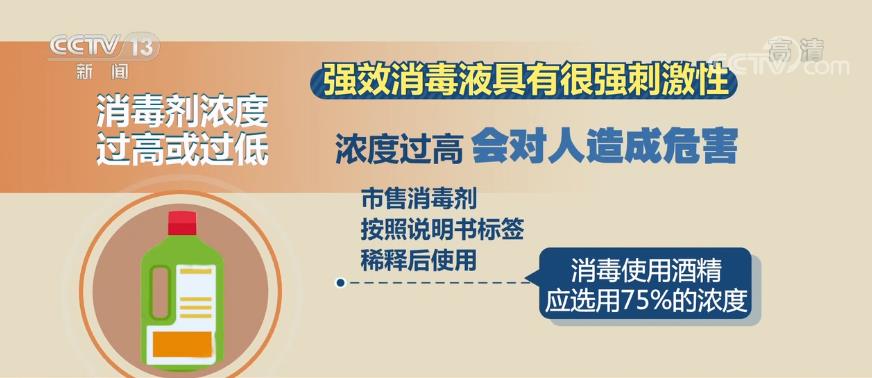 强效消毒液一般具有很强的刺激性,浓度过高可能会对人造成危害。市售消毒剂应该按照说明书标签进行稀释后使用,消毒使用酒精应选用75%的浓度。