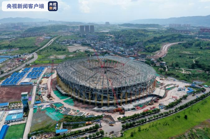 重庆龙兴足球场项目位于重庆龙兴古镇旁龙脑山下,占地面积约303亩,总建筑面积约16.69万平方米,由6万座固定座席的甲级大型专业足球场、配套用房、地下停车库、设备用房及广场等组成。项目建成后,可容纳约6万人观赛。项目计划于2023年承办第十八届亚洲杯足球赛的相关赛事。(总台记者 李洪淼 张帆)