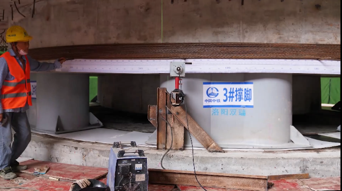 因上跨的京广铁路是我国南北铁路交通大动脉,车次繁忙,密集时段平均每3—4分钟就有一趟列车驶过。为了减少对铁路的影响,保障施工人员安全,大桥采取转体施工法,也就是先在平行于铁路的方向进行钢箱梁拼装及主塔施工,再利用铁路营业线相对空闲的“天窗点”进行转体施工。由于“天窗点”时间有限,本次转体需在2个小时内完成。