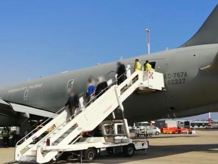 △第二架意大利从阿富汗撤侨的飞机抵达罗马 (图片来自阿德恩克罗诺斯通讯社)