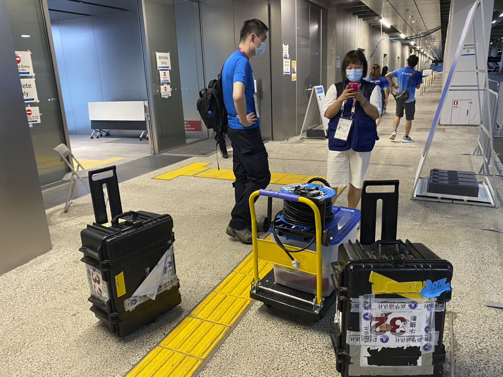 8月7日晚,东京奥运会花样游泳比赛结束,也是东京奥运会游泳、跳水、花游的比赛场馆——东京水上运动中心结束所有比赛的日子。赛后,水下摄影记者们将设备收起装箱,离开战斗了15天的游泳场馆。