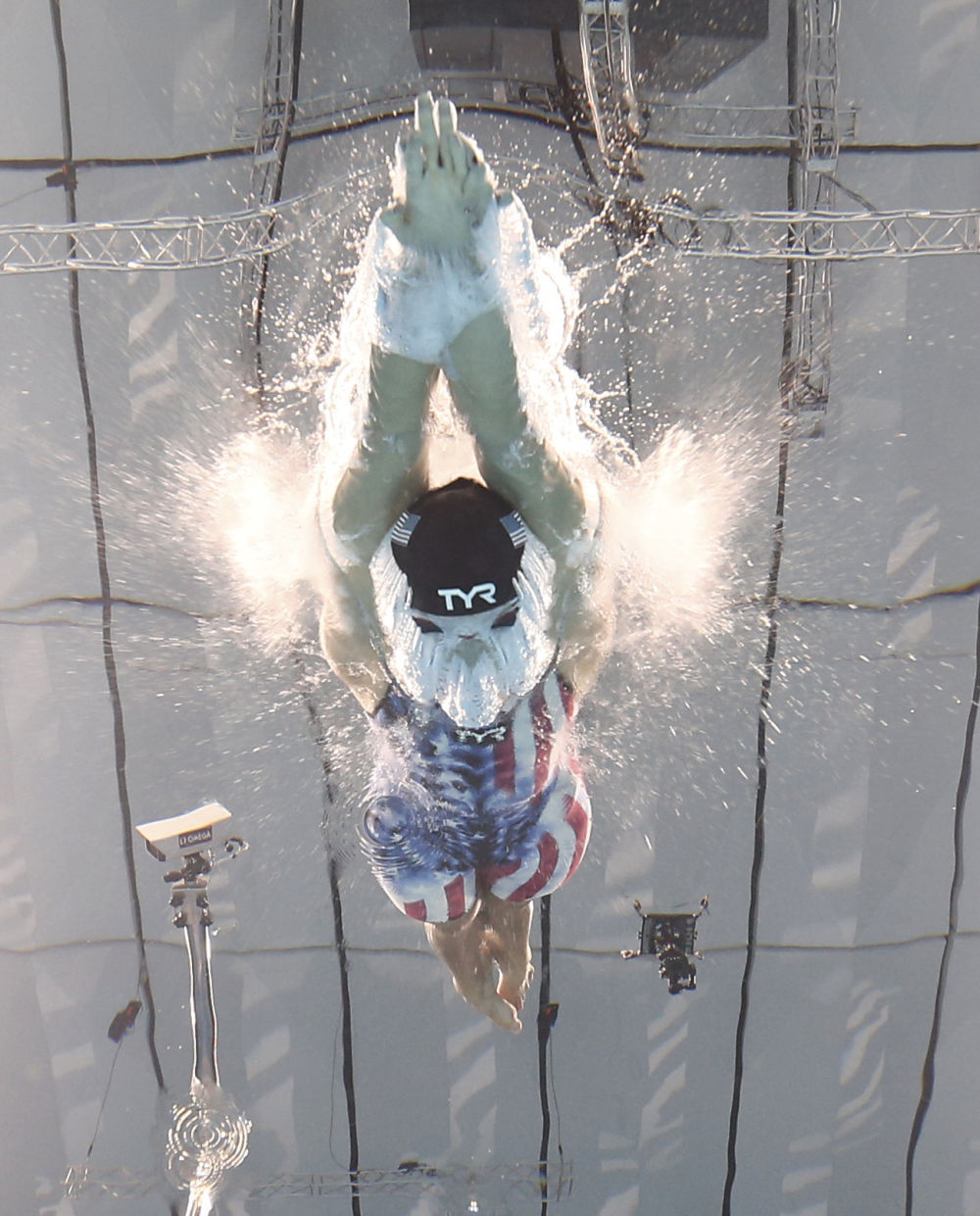 东京奥运会是我本人参与拍摄的第三届夏季奥运会。在这三次奥运会中,我的主要任务就是在游泳比赛中负责水下摄影机位的拍摄。从2008到2021,13年的时间里,奥运会的水下摄影设备也有了长足的发展,从只有防水罩包裹相机、镜头再加上一根防水快门线的固定机位模式,发展成今天的水下摄影机器人模式,后者可以用电脑实时监控水下取景、更改焦段、设置曝光组合、拍摄传输图片,甚至可以通过移动云台更改相机位置。那么,在东京奥运会上,一名水下摄影记者需要做些什么呢?