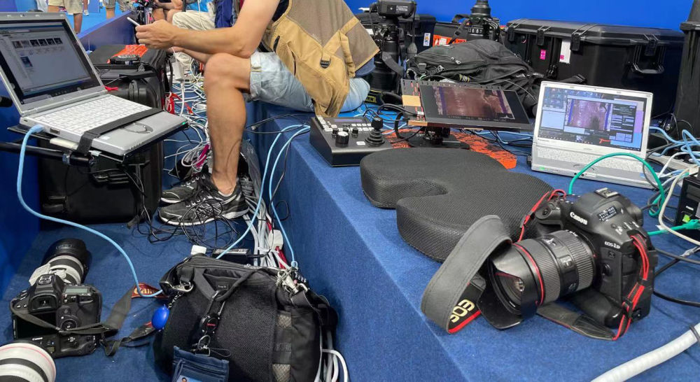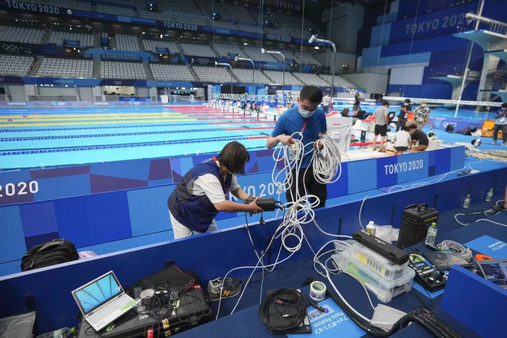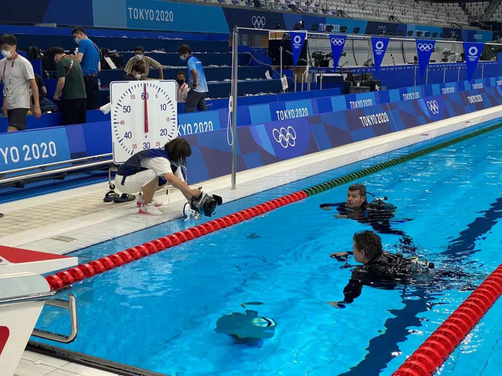 在东京奥运会筹备阶段,也就是开幕前一年多,组委会就向各家媒体收集水下摄影位置需求,媒体根据自己的计划来安排是否在游泳、跳水、水球等项目安放水下摄影器材;同时,组委会有专门的部门来指导这些媒体准备符合条件的水下摄影设备,限制条件包括水下相机的大小、高度、防水罩的颜色、线缆的颜色等。各家媒体就根据这些条件来准备自己的水下摄影设备。