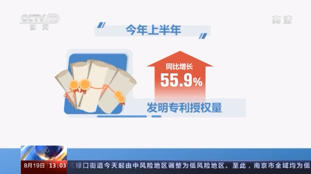 数据显示,今年上半年全国高技术制造业增加值同比增长22.6%,其中电子、医药行业同比分别增长24.4%、29.5%,发明专利授权量同比增长55.9%。