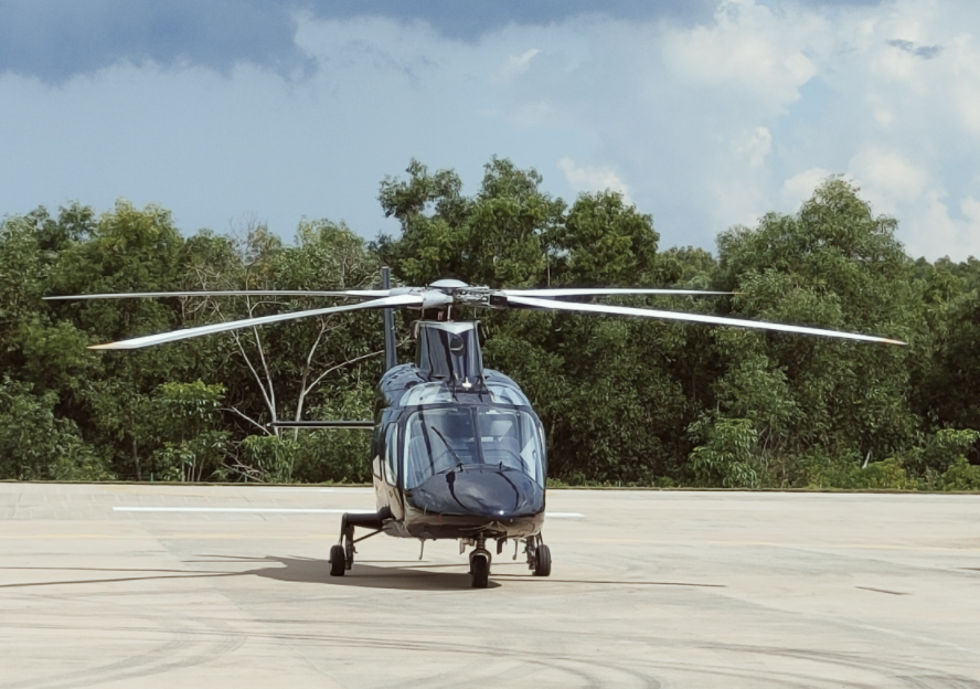 8月18日下午,记者在海口市的金林海口甲子通用机场,看到一架从墨西哥购进的AW109E直升机运抵此地,并完成安装调试、交付运营。