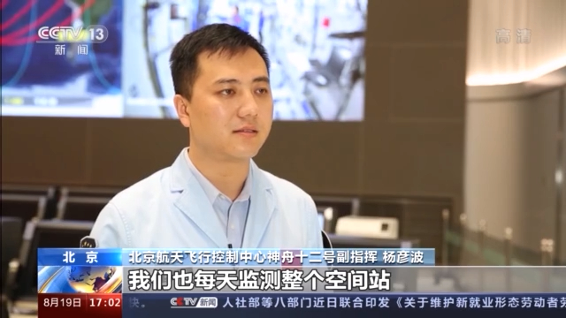 北京航天飞行控制中心神舟十二号副指挥 杨彦波:我们也每天监测整个空间站运转的这样一个轨道和空间环境情况,发现有这种空间的碎片的情况,我们还要在轨实施空间站的这种碰撞规避的这样一个控制。