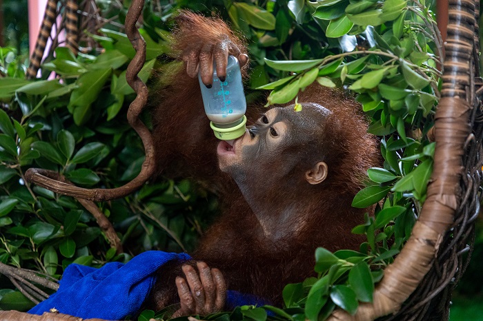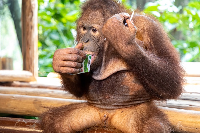 目前,丝蒂夫每天需要吃2餐奶,其他时间采食水果,在它成长到1岁6个月和2岁之间,会让它尝试归群。