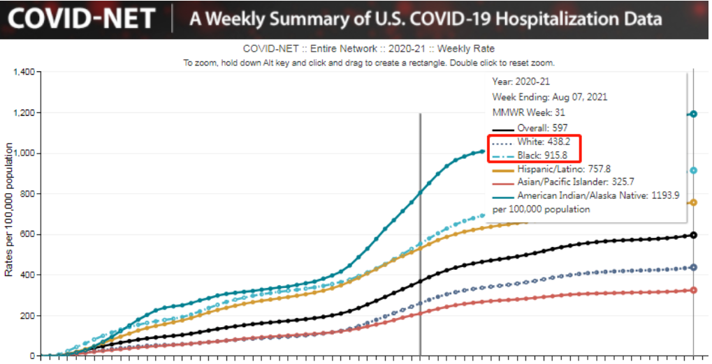 面对疫情,美国少数族裔更为脆弱和无助。美国疾控中心(CDC)当地时间19日发布的最新数据显示,疫情期间,非洲裔美国人的新冠肺炎住院率为每10万人915.8人,是白人(每10万人438.2人)的两倍以上。