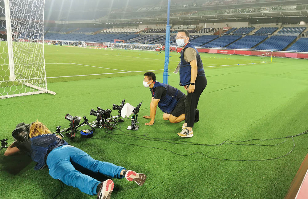 另外,新华社摄影团队提前和组委会沟通,在东京奥运会的足球报道中增加了遥控相机的机位,不仅使画面更丰富,使记者更好地捕捉进球瞬间,也体现了新华社摄影团队作为IOPP成员的专业性。我们通常在比赛前2-3个小时就要提前进入内场,在球门后占据心仪的位置。
