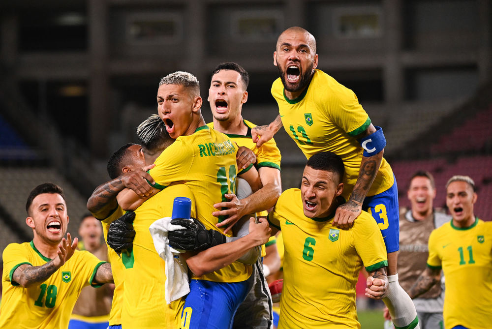 8月3日,巴西队球员在获胜后庆祝。