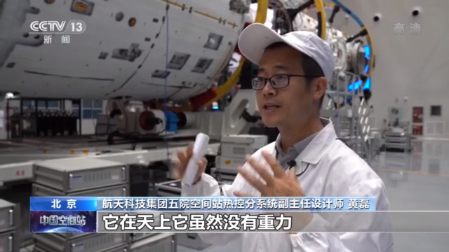 航天科技集团五院空间站热控分系统副主任设计师 黄磊:在地面上它的重量有30多公斤,它在天上虽然没有重力,但是它有一定的惯性。所以我们在设计的过程中也充分考虑了,防止它的漂移的一些设计和操作,避免它飘走。
