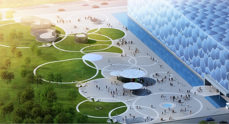 “冰立方”冰上运动中心位于国家游泳中心南广场地下,总建筑面积8821平方米,建成后将成为集冰上赛事、滑冰健身、冰上培训、体育旅游、冰上演出等功能于一体的冰上项目平台。基于绿色办奥的理念,在设计上采用被动式建筑的设计方案,冰上运动中心依靠顶部直径为13米的大采光井及若干导光管将室外光引入实现自然采光,每年将节省用电26000度。目前,冰场的冰管支架已铺装完毕,进入制冰的前期准备阶段。